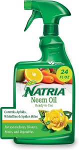 - Mix one teaspoon of neem oil with a quart of water. Add a few drops of mild liquid soap if desired (helps in emulsifying the oil).